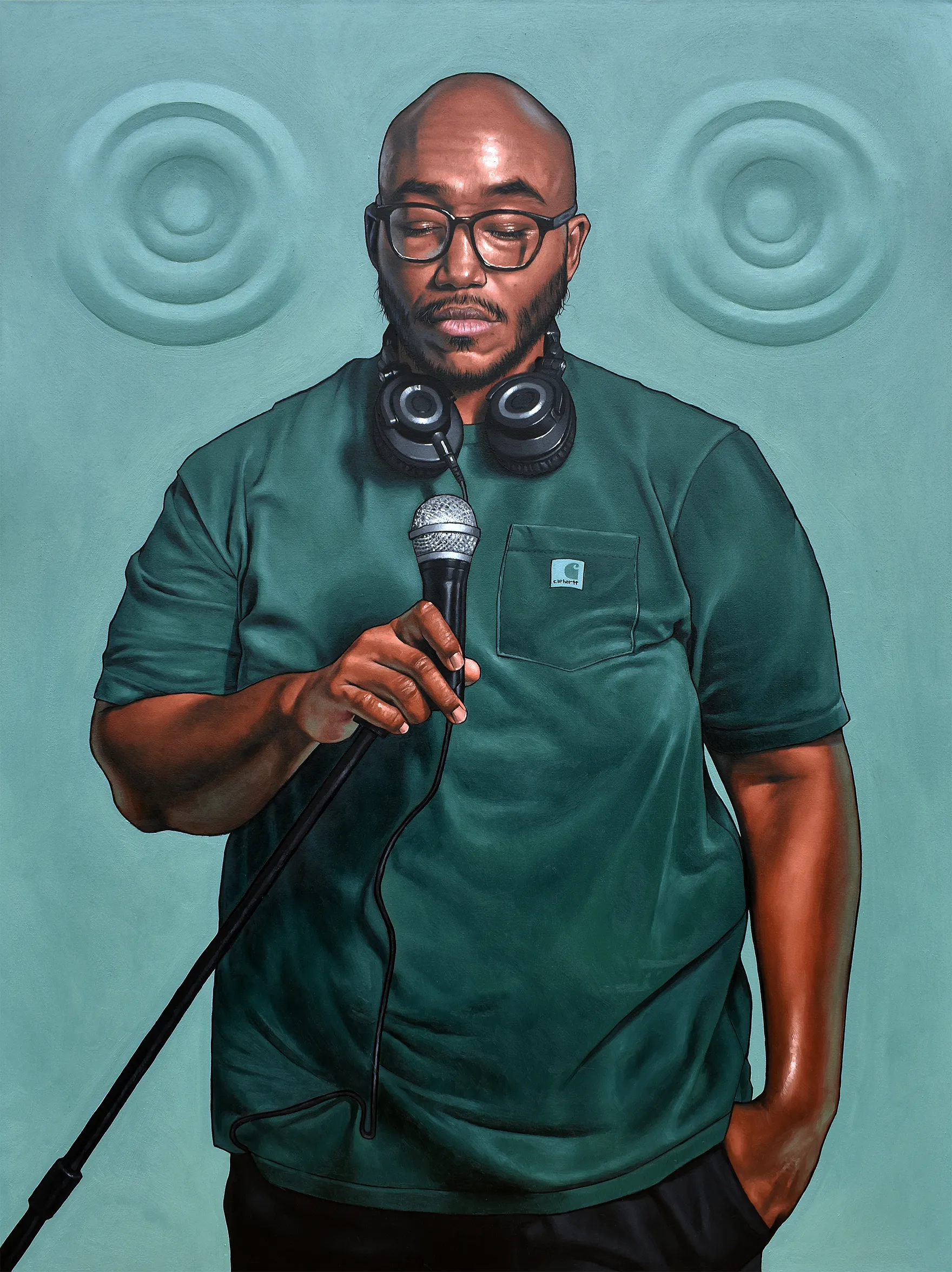Monica Ikegwu uses her paintings to “give people a platform to display themselves in the way that they truly are without any limitations.” The artist presents classically and meticulously rendered figures in bold spaces defined by unconventional use of color, texture and composition, resulting in an intriguing blend of academic and contemporary art. The primary focus of her work is African American youth and current fashion trends as a celebration of Black aesthetic and self-identity. Each portrait is a collaboration between artist and sitter, with the subject choosing pose and clothing as a “way to take charge of their image.” In presenting Black youth in a positive and self-identified light, Ikegwu hopes to challenge stereotypes, to encourage those outside the Black community to set aside preconceived notions about outward dress and to see the individual. For Black youth, she invites consideration of outward appearance as a positive form of self-expression. Ultimately, she aims to “produce work that is a culmination of people, not as subjects to paint, but as people with their own sense of self.”